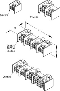 Hauptleitungs-Abzweigklemme 25 mm² nach DIN VDE 0603-2, zur Befestigung in Längs- und Querrichtung auf Tragschiene TS 35 mm deren Anschlussmaße DIN EN 60715 entsprechen, halogenfrei. Abmessungen (ca. Maße) H x B x L : 39 x 51 x 151 mm Klemmbereich Zugang eindrähtig, starr : 10,0 - 25,0 mm² Anschlussmöglichkeiten Zugang eindrähtig, starr : 2 x 10,0 mm², 2 x 16,0 mm², 2 x 25,0 mm² Klemmbereich Abgang eindrähtig, starr : 6,0 - 16,0 mm² Anschlussmöglichkeiten Abgang eindrähtig, starr : 1 x 6,0 mm², 1 x 10,0 mm², 1 x 16,0 mm² Polzahl : 5 Werkstoff Isolierteil : PA Werkstoff Polklemme : Messing Werkstoff Klemmschrauben : galvanisch verzinkter Stahl mit Kombi-Kreuzschlitz Nennspannung : 400 V Farbton : lichtgrau RAL : 7035 (ähnlich)