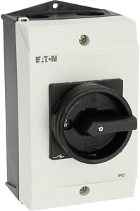 Hauptschalter, Sortiment: Hauptschalter, Wartungsschalter, Typkenner: P1, STOPP-Funktion: HALT-Funktion, mit schwarzem Drehgriff und Sperrkranz, Information zum Lieferumfang: Hilfsschalterkontakt nachrüstbar., 3-polig + N, Abschließbarkeit: abschließbar in 0-Stellung, Schutzart: IP65, Bauform: Aufbau, Bemessungsbetriebsleistung AC-23A, 50 - 60 Hz 400 V: P = 11 kW, Bemessungsdauerstrom: Iu = 25 A, Normen und Bestimmungen: IEC/EN 60947, VDE 0660, IEC/EN 60204, Lasttrennschalter nach IEC/EN 60947-3