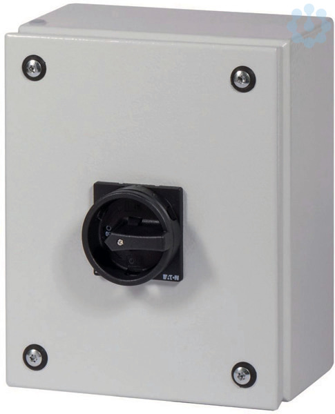 T0-4-15682/SE2/SVB-SW_Hauptschalter, T0, 20 A, Aufbau, 4 Baueinheit(en), 6-polig, 1 Schließer, 1 Öffner, HALT-Funktion, mit schwarzem Drehgriff und Sperrkranz, abschließbar in 0-Stellung, im Stahlgehäuse