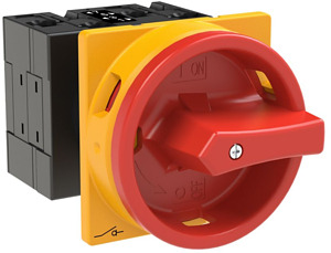 Hauptschalter, Sortiment: Hauptschalter, Wartungsschalter, Reparaturschalter, Typkenner: T3, STOPP-Funktion: NOT-AUS-Funktion, mit rotem Drehgriff und gelbem Sperrkranz, 3-polig, Schutzart: Front IP65, Bauform: Einbau, Schaltwinkel: 90 °, Bemessungsbetriebsleistung AC-23A, 50 - 60 Hz 400 V: P = 15 kW, Bemessungsdauerstrom: Iu = 32 A, 2 Baueinheit(en), Normen und Bestimmungen: IEC/EN 60947, VDE 0660, IEC/EN 60204, CSA, UL, Lasttrennschalter nach IEC/EN 60947-3
