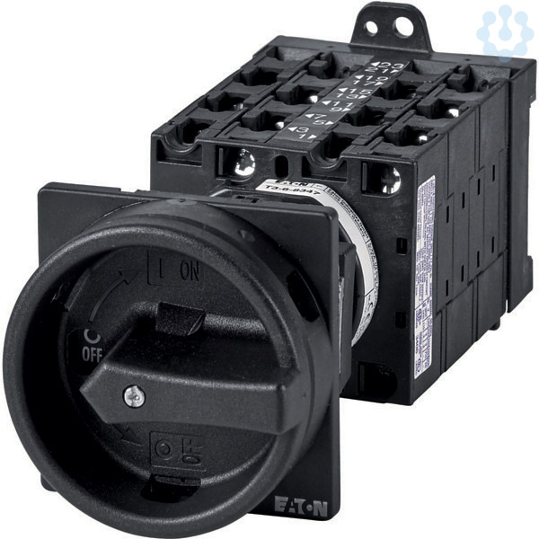 Hauptschalter, Sortiment: Hauptschalter, Wartungsschalter, Reparaturschalter, Typkenner: T3, STOPP-Funktion: HALT-Funktion, mit schwarzem Drehgriff und Sperrkranz, 12-polig, Schutzart: Front IP65, Bauform: Zwischenbau, Schaltwinkel: 90 °, Bemessungsbetriebsleistung AC-23A, 50 - 60 Hz 400 V: P = 15 kW, Bemessungsdauerstrom: Iu = 32 A, 6 Baueinheit(en), Normen und Bestimmungen: IEC/EN 60947, VDE 0660, IEC/EN 60204, CSA, UL, Lasttrennschalter nach IEC/EN 60947-3