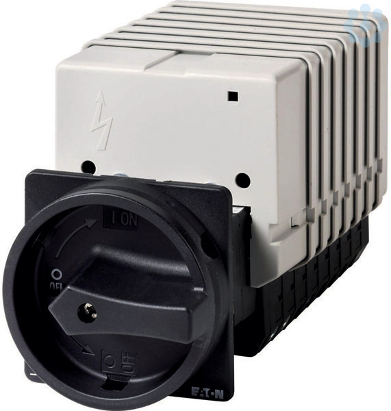 Hauptschalter, Sortiment: Hauptschalter, Wartungsschalter, Reparaturschalter, Typkenner: T5B, STOPP-Funktion: HALT-Funktion, mit schwarzem Drehgriff und Sperrkranz, 16-polig, Schutzart: Front IP65, Bauform: Zwischenbau, Schaltwinkel: 90 °, Bemessungsbetriebsleistung AC-23A, 50 - 60 Hz 400 V: P = 30 kW, Bemessungsdauerstrom: Iu = 63 A, 8 Baueinheit(en), Normen und Bestimmungen: IEC/EN 60947, VDE 0660, IEC/EN 60204, CSA, UL, Lasttrennschalter nach IEC/EN 60947-3