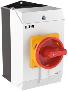 Hauptschalter, Sortiment: Hauptschalter, Wartungsschalter, Reparaturschalter, Typkenner: T3, STOPP-Funktion: NOT-AUS-Funktion, mit rotem Drehgriff und gelbem Sperrkranz, 3-polig + N, Schutzart: IP65, Bauform: Aufbau, Schaltwinkel: 90 °, Bemessungsbetriebsleistung AC-23A, 50 - 60 Hz 400 V: P = 15 kW, Bemessungsdauerstrom: Iu = 32 A, 3 Baueinheit(en), Normen und Bestimmungen: IEC/EN 60947, VDE 0660, IEC/EN 60204, Lasttrennschalter nach IEC/EN 60947-3