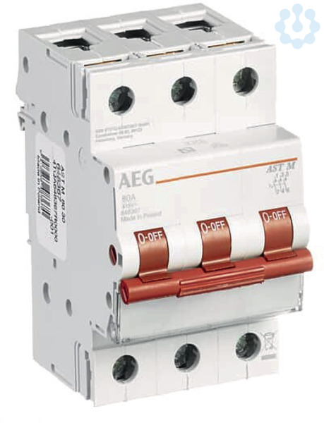 Hauptschalter der AEG Line: Handbetätigtes Schalten elektrischer Geräte. Anwendungen: Gebäudeinstallationstechnik im kommerziellen und privaten Bereich bis hin zu industriellen Schaltanlagen. Schalten von Beleuchtungs- und Prozessanlagen in Geschäften, Büros, Kaufhäusern, Fabriken, Krankenhäusern etc. Eigenschaften: Große Auswahl an mehrpoligen Schaltgeräten mit unterschiedlichen Schaltvermögen. Lieferbar sind Hauptschalter, Ausschalter, Wechselschalter und Gruppenschalter mit Mittelstellung. Die kompakten Schaltgeräte (4-polig in 1 TE) haben ein hohes Schaltvermögen durch doppeltes Trennen der Stromkreise. Sämtliche Schaltgeräte können mit einem Verhängschloß (in Verbindung mit einer Knebelsperre 'KS' ) verriegelt oder abgeschlossen werden und besitzen das VDE Zeichen. Die Anschlußklemmen sind mit unverlierbaren Pozidrivschrauben in Schutzart IP20 ausgestattet.