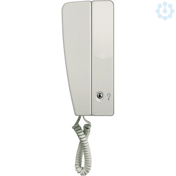Hausstation SWING für Gegensprechverkehr, ohne Mithörsperre, Elektretmikrofon einstellbare Rufabschaltung, 1 Türöffnertaste, 1 Drehrad für Ruflautstärkeregelung und Rufabschaltung. Wendelschnur steckbar, Montage mit beiliegenden Schrauben und Dübeln oder auf Schalterdose. Farbe: Weiß
