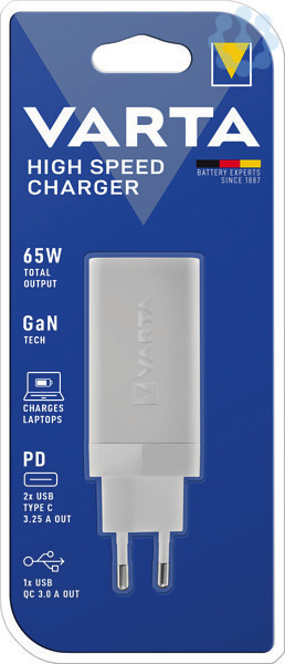 Die effizienteste Art zu laden. Entwickelt mit innovativer GaN-Technologie überzeugt der VARTA High Speed Charger durch kompakte Bauweise und hohe Ausgangsleistung.