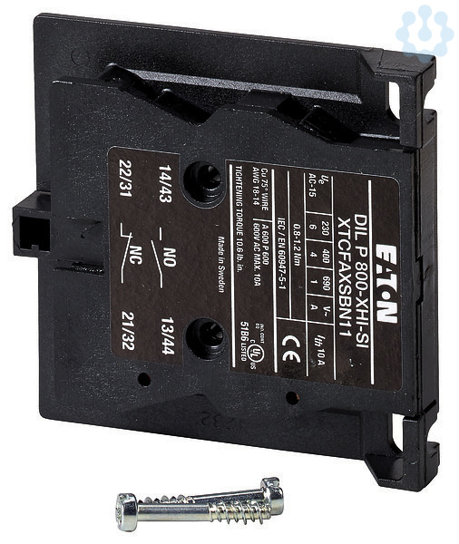 Hilfsschalterbaustein, Funktion: für Standardanwendungen, Anschlusstechnik: Federzugklemmen, Bemessungsbetriebsstrom AC-15 220 V 230 V 240 V: Ie= 4 A, Bemessungsbetriebsstrom AC-15 380 V 400 V 415 V: Ie= 4 A, Kontaktbestückung S = Schließer: 1 S, Kontaktbestückung Ö = Öffner: 1 Ö, Montageart: Seitenanbau, verwendbar für: DILP250…, DILP315…, DILP500…, DILP630…, DILP800…, Ausführung: seitliche Hilfsschalter