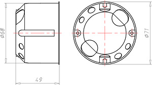 Gerätedose O-range®, Tiefe 49 mm (9063-02). Die neuen KAISER Hohlwand Installationsdosen mit bewährter Laschen-Befestigungstechnik und verbesserten Produktmerkmalen. Eine praxisgerechte Bauform und eine gezielte Auswahl an Leitungs- und Rohreinführungen ermöglichen eine Vielzahl an Nutzungsmöglichkeiten. Zusätzliche Dosen für Sonderanwendungen wie den Einbau in dünn beplankte Wände oder Wände aus Massivholz runden das vielfältige Sortiment ab. Die VDE Zertifizierung dokumentiert dabei den hohen Qualitätsanspruch. Tiefe: 49 mm | Fräsloch Ø: 68 mm