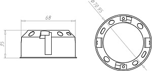 Gerätedose O-range® für dünne Beplankungen, Tiefe 35 mm (9061-01). Fräsloch Ø: 68 mm | Tiefe: 35 mm