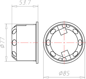 Gerätedose CEE (9075-12). Anwendungsgebiet: Für Einbaugeräte | Installationsart: GEG Luftdicht | Tiefe: 50 mm | Fräsloch Ø: 74 mm