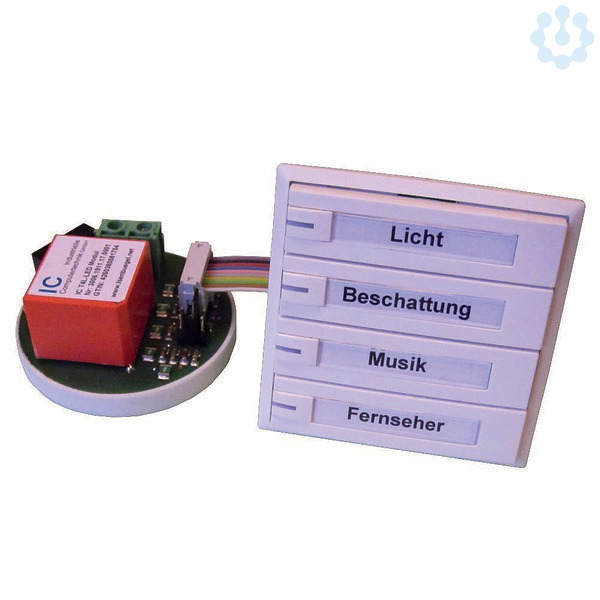 Das IC T4L-PLUG Modul ist zur Einbindung des FELLER Led 4 Fach Taster 3914-1.FMI.L.P.61 (EDIZIOdue) oder ähnlich in das digitalSTROM System konzipiert. Das Modul hat die Funktionsmerkmale der SW-SKM300 Klemme integriert. Die Kleinspannung für die angeschlossenen Taster werden vom T4L-PLUG Modul zur Verfügung gestellt. Ebenfalls on board ist die Spannungsversorgung für die Leds des FELLER Oberteil. Mit dem mitgelieferten Flachbandkabel wird das Modul mit dem Taster durch aufstecken verbunden. Mit den vier Tasterelementen können bis zu 16 Funktionen im dS ausgeführt werden. Die Kleinspannungsseite ist galvanisch vom Netz mit >2KV getrennt. Eingebaut wird das Modul in der Unterputz- / Schalterdose. Mit seinen Abmessungen von d=54mm und h=26mm passt es auch in Standard Dosen. Lieferung mit Anschlusskabel aber ohne Taster.