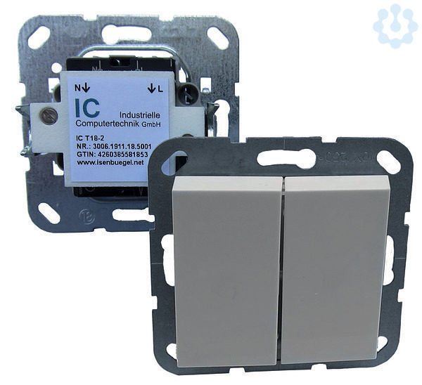 Smart Home 2 Fach-Taster mit vollintegrierter digitalSTROM Technik on Board. Gegenüber einem standard Taster ist der "dS IC Taster T18-2" im inneren Aufbau nur 7 mm tiefer. Am T18-2 werden nur L und N über integrierte Federsteckklemmen angeschlossen. Die Tasterwippen wirken direkt auf die integrierte dS Elektronik. An der hinten liegenden LED ist der Anmeldemodus im digitalSTROM Netz abzulesen. Die Taster sind passend zu den Wippen und Rahmen der GIRA Schalter-Serien E2, E3, Event, Esprit und Classix. Die Tasterwippen 55x55mm sind nicht im Lieferumfang enthalten.