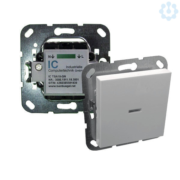 Smart Home Taster mit vollintegrierter digitalSTROM Technik on Board. Kommen/Gehen Funktion im digitalSTROM System mit Anzeige über LED hinter der Tasterwippe. Am IC Taster T18-KG werden nur L und N über integrierte Federsteckklemmen angeschlossen. Nach dem Anschluß am Netz ist der vorkonfigurierte Taster sofort nutzbar. Wird die Gehen Funktion von einem anderen Ort im dS Netz aufgerufen, wird dies ebenfalls am T18-KG angezeigt. Die Taster sind passend zu den Wippen und Rahmen der GIRA Schalter-Serien E2, E3, Event, Esprit und Classix. Die Tasterwippen 55x55mm sind nicht im Lieferumfang enthalten.