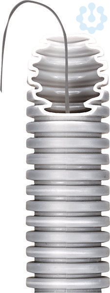Elektroinstallationsrohr mit Zugdraht biegsam/selbstzurueckbildend nicht flammausbreitend ICTA nach DIN EN 61386-22 (VDE 605-22):2011-12 / DIN EN 61386:2004 + A11:2010 aus Propylen (PP) mit mittlerer Druck- und Schlagfestigkeit zur Verlegung in der Beton,- Estrich- und Unterputz-installation, sowie zur Verlegung in der Maschinen und Anlageninstallation. Einsatztemperatur -5°C bis +90°C. Farbe lichtgrau