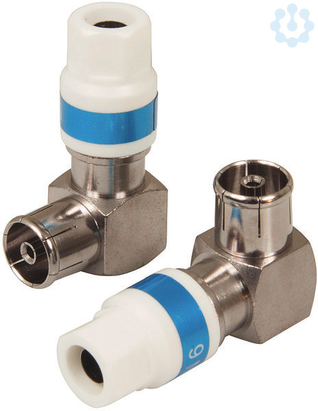 IEC Winkelkupplung, Self Install, Montage ohne jegliches Spezialwerkzeug - für 6.6 bis 7 mm Koax-Kabel mit Dielektrikum ab 4,70 mm Durchmesser, zum Befestigen am Kabel wird der Stecker einfach auf das abisolierte Kabel aufgesteckt. Beim Ziehen am Kabel wird der Stecker angepresst.