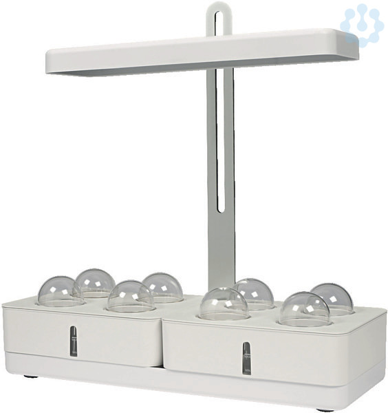 LED Pflanzenlicht mit zwei Pflanzbehältern. Produkteigenschaften: Verwendet eine Kombination aus weißen Vollspektrum-LEDs und roten LEDs. Höhe des Leuchtenkopf kann an die Größe der Plante angepasst werden. Produktvorteile: Speziell entwickeltes LED-Spektrum fördert die Photosynthese der meisten Pflanzen. Imitiert den Tag-/Nachtzyklus durch automatischen Timer Betrieb. Anwendungsgebiete: Indoor Gardening. Küchen. Wohnräume. Technische Ausstattung: Inklusive Pflanzbehälter mit Wasserstandsanzeige.