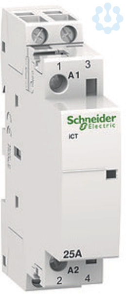 Installationsschütz Acti 9 iCT. Nennstrom 25A, 2S, Steuerspannung 24V, 50Hz, Isolationsspannung (Ui) 500V AC. Schalten von Stromkreisen bis 100A. Klemmen IP 20. Geräuscharmes Schalten. Mechanische Schaltstellungsanzeige. Installationsschützen mit Vorwahl verfügen über einen frontseitigen Betriebsartenwahlschalter mit vier Schaltstellungen. Kompatibel mit der gesamten Produktreihe Acti 9. Der iCT Installationsschütz erfüllt folgende Normen- EN 61095 und IEC 1095. Des Weiteren ist diese Baureihe VDE zertifiziert!.
