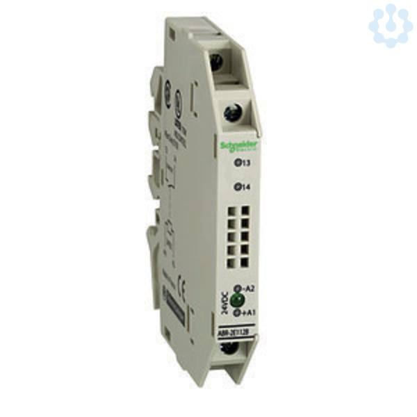 Dieser Interface-Baustein dient als Schnittstelle in einem Automatisierungssystem und ermöglicht den Austausch binärer Steuersignale. Der Baustein basiert auf der Technologie von Schützen, zeichnet sich durch seine hohe Qualität aus und hat eine Baubreite von 9,5 mm. Die Steuersignale werden an den unteren Schraubklemmen zugeführt und das Schaltsignal an den oberen Schraubklemmen abgegriffen. Eine LED zeigten die Ansteuerung an.