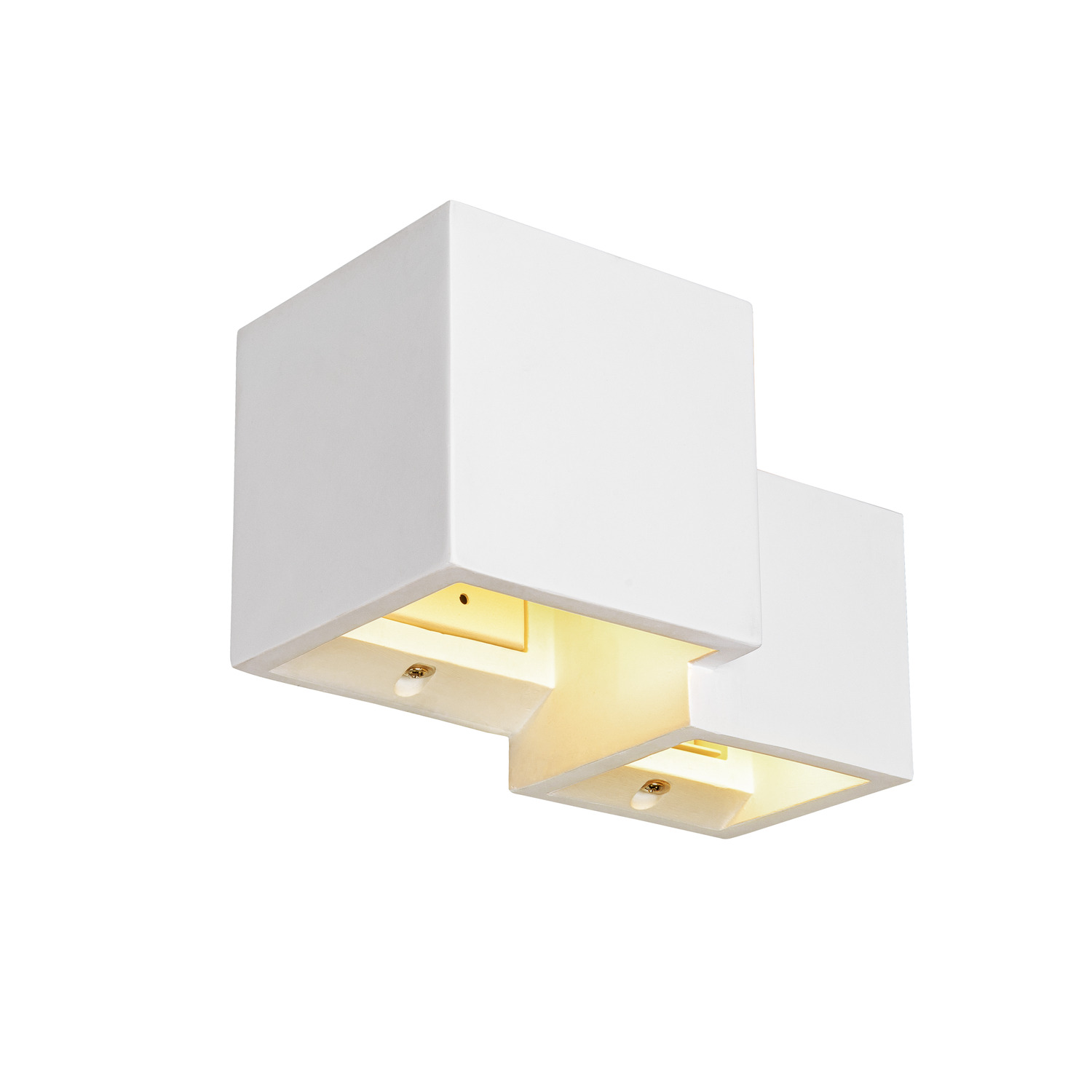 Unsere Gipsleuchte PLASTRA WL CUBES der PLASTRA-Serie ist weiß und kann nach Belieben selbst bemalt werden. Somit fügt sich die Leuchte bestens in die geplanten und schon vorhandenen Farbkonzepte ein. Für diese Leuchten können Sie Leuchtmittel für G9-Sockel verwenden. Unsere Empfehlung ist ein Leuchtmittel des Typs QT14.