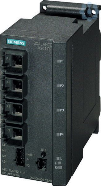 SCALANCE X204IRT, managed IE IRT Switch, 4x 10/100 Mbit/s RJ45 Ports, Fehlermeldekontakt mit Set- Taster, redundante Spannungs- Versorgung, PROFINET IO Device, Netzwerk-Management, Redundanz-Manager integriert, inkl. elektron. Handbuch auf CD-ROM, C-PLUG optional. SCALANCE X204IRT Managed, Layer 2 Kompakt Switch, 4x 10/100 Mbit/s RJ45 für taktsynchrone Motion Control-ApplikationenFür hoch performante, taktsynchrone Motion Control-Applikationen durch IRT mit integriertem Redundanzmanager.Schnelle Medienredundanz, optimale Performance durch Kombination der Switching-Mechanismen Cut Through und Store and Forward sowie hohe Netzwerkverfügbarkeit in Ringstrukturen und stoßfreie Redundanz bei Verwendung des PROFINET-konformen MRPD-Verfahrens. Sicherung der Datenkommunikation durch robusten, industriegerechten Geräteanschluss über PROFINET-konforme Steckverbinder mit zusätzlicher Zug- und Biegeentlastung. Wesentliche Vorteile beim Engineering, der Inbetriebnahme und der Betriebsphase einer Anlage durch integrierte Projektierung und Diagnose in STEP 7. Möglichkeit zum Gerätetausch ohne PG durch Einsatz des Wechselmediums C-PLUG. Zusätzliche Funktionen sind die PROFINET- Diagnose und Gerätediagnose über LED, SNMP-Zugang, integrierter Web-Server und automatische E-Mail-Sendefunktion für Remote-Diagnose und Signalisierung über das Netz.Managed, Layer 2 Kompakt Switch, DC 24 V, 4x 10/100 Mbit/s RJ45 Ports elektrisch, PN IO mit IRT.Umfangreiches Zubehör wie z.B. das Wechselmedium C-PLUG, SITOP PSU100C 24 V/0,6 A zur geregelten Stromversorgung, IE SC RJ POF- und PCF Schraubstecker sowie deren dazugehörige Konfektionierkoffer zur Montage vor Ort, RJ45 Steckverbinder und verschiedene Leitungsvarianten rundet das System ab.Switch to the future - SCALANCE X.