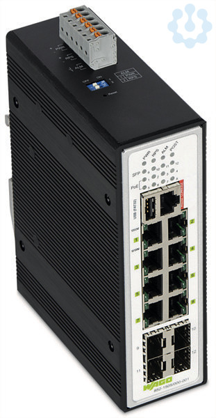 Industrial-Managed-Switch; 8-Port 1000BASE-T; 4-Slot 1000BASE-SX/LX; Erweiterter Temperaturbereich; 8 * Power over Ethernet; USB