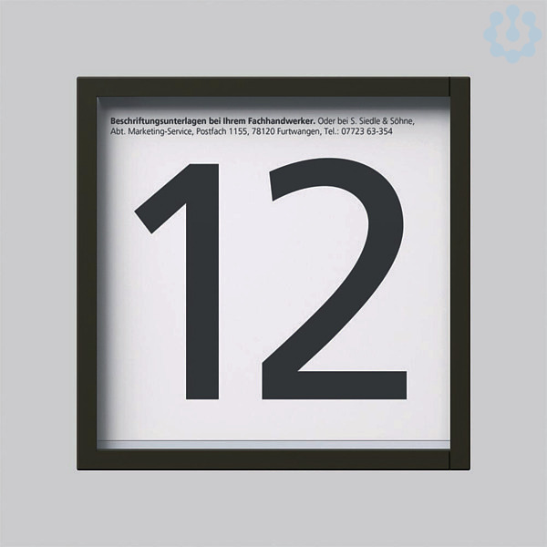 Informations-Modul für die kompakte Darstellung von Informationen aller Art (z. B. Hausnummer, Logo, Öffnungszeiten), hinterleuchtete Beschriftung wechselbar.