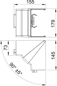 Inneneck-Haubenformteil aus halogenfreiem PC/ABS zur Richtungsänderung von Geräteeinbaukanälen Rapid 80 der Systeme GK, GKH, GS und GA. Die Formteile sind variabel von 85° - 95° verstellbar und einsetzbar für symmetrische und asymmetrische Kanäle.