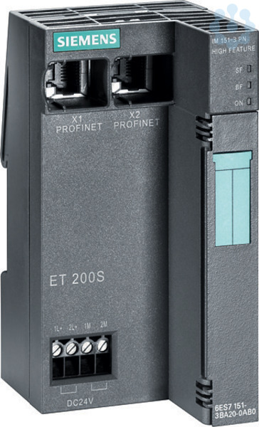 SIMATIC DP, Interface-Modul IM 151-3 PN HF für ET 200S Übertragungsrate 100MBit/s max. 63 Peripheriemodule bis 2m Breite anschließbar, 2x Busanschluss über RJ45 inkl. Abschlussmodul SIMATIC ET 200S ist ein modular aufgebautes skalierbares, dezentrales Peripheriesystem, welches insbesondere für den Einbau in kleinen maschinennahen Schaltkästen konzipiert ist. Die Module können entweder direkt an eine ET 200S IM mit CPU Funktionalität gesteckt oder via PROFINET oder PROFIBUS an eine Zentralsteuerung angeschlossen werden. SIMATIC ET 200S kann mit bis zu 64 Peripheriemodulen ausgebaut werden, die in beliebiger Kombination gesteckt werden können. Das System bietet ein umfangreiches Spektrum an Baugruppen. Viele Module sind zudem in verschiedenen Ausprägungsstufen verfügbar, was die Skalierbarkeit bezüglich Funktionalität und Preis deutlich verbessert. So stehen neben Modulen mit Standardfunktionalität (ST) auch solche mit erweitertem Funktionsumfang und Diagnose (HF High Feature/ HS High Speed) zur Verfügung. Der Vorteil des ET 200S Systems liegt in der einfachen Anwendbarkeit, wie z. B. durch die Möglichkeit Modul- und Klemmenboxwechsel im laufenden Betrieb vorzunehmen. Durch das sog. Hot Swapping werden Verfügbarkeit und Produktivität der Maschine deutlich erhöht.