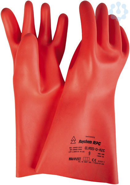 Isolierende Handschuhe nach EN 60903 für Nennspannungen bis 1000 V AC. Kategorie AZC für Beständigkeit gegen Säuren, Ozon und Kälte. Größe 9.