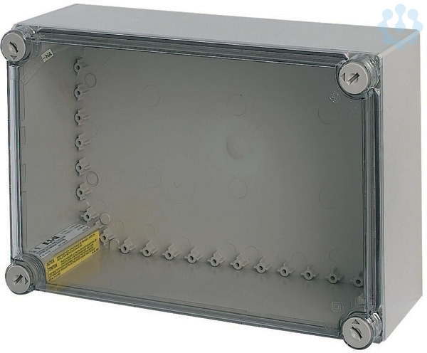 Verteiler-Leergehäuse, UL approbiert, Material Polycarbonat, schlagfest, Schutzart IP65, patentierter Deckelverschluss mit integriertem Überdruckausgleich, an alle 4 Seitenwänden mit abnehmbaren glatten Flanschen bestücktplombierbare Deckelverschlüsse, RAL 7035, grau (Unterkasten), durchsichtig rauchgrau, (Deckel), Einbautiefe bei Montageplatte=125mm, Ausführung Deckel: durchsichtig rauchgrau, Ausführung Unterteil: rundum UL Flansche