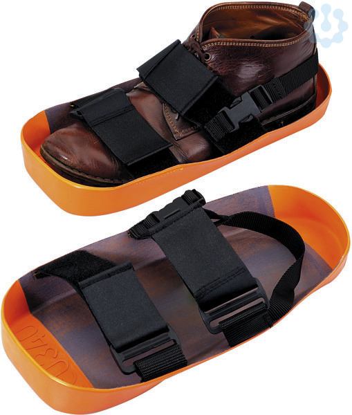 Isolierende Überschuhe, für elektrotechnische Arbeiten unter Spannung in Innenräumen auf festem Untergrund (z. B. Zählerwechsel unter Spannung, Sperrkassierertätigkeiten, Arbeiten an Innenraum-Kabelverteilern). Die Galoschen dienen als gleichwertiger Ersatz für eine Standort-Isolierung bis zu 1000 V AC /1500 V DC, schnelle Befestigung an normalem Schuhwerk mittels 2 Klettverschlüssen im Vorderfuss- sowie mit einem Steckschluss im Fersenbereich, baumustergeprüft in Anlehnung an DIN EN 50 321. Die Nutzung unter feuchten Bedingung, auf Leitern und bei Arbeiten in Außenbereichen, insb. im Kabelgraben, ist ebenso wenig zulässig, wie bei Arbeiten, bei denen ein Erdschluss mit anderen Körperteilen nicht ausgeschlossen ist (z.B. kniende Tätigkeiten). Sohlenlänge 300-320 mm, Schuhgröße ca. 43-46, Innenlänge 320 mm. 1 Paar