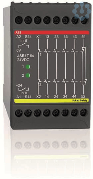 Erweiterungsrelais mit Relaisausgängen, 4 NO + 1 NC (zeitverzögert je nach Type von 0 Sek. - 0,5 Sek.), 24 VDC Betriebsspannung. Die JSR-Serie eignet sich als Erweiterungsrelais für Sicherheitsrelais und Sicherheits-SPS um die Anzahl der sicheren Ausgangskontakte zu erhöhen.