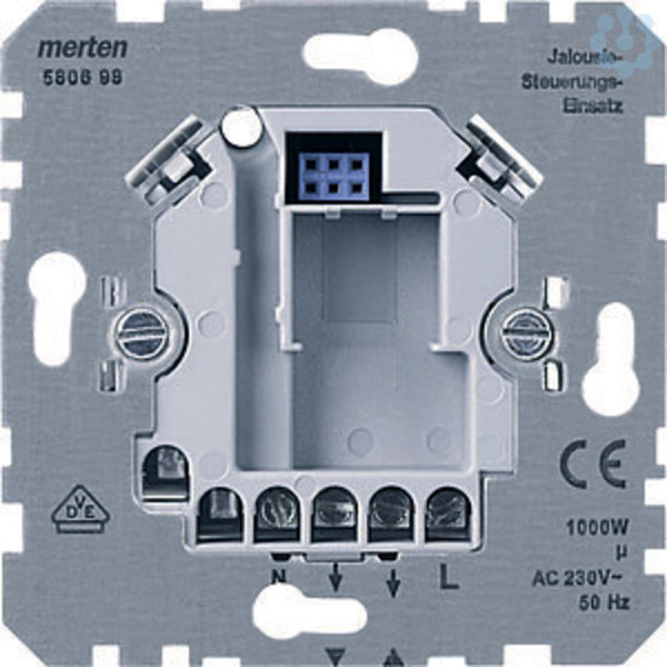 Zur Vor-Ort-Ansteuerung eines Jalousie-/Rollladenmotors mit Endschalterxx. Motorschutz durch gegeneinander verriegelte Relaiskontakte. Ohne Nebenstelleneingang. Nennspannung AC 230 V, 50 Hz. Neutralleiter erforderlich. Schaltleistung max. 1 Motor 1000 VA. Ausgänge 2 Schließer (gegeneinander verriegelt). Impulsdauer 2 min. Anschlussklemmen Schraubklemmen für max. 2,5 mm² oder 2x1,5 mm². Zu komplettieren mit Jalousie-Taster System M 5877xx, 5862xx, System Fläche 5842xx. Jalousie-Taster mit Sensoranschluss System M 5878xx, 5865xx, System Fläche 5845xx. Jalousie-Taster mit Memory-Funktion und Sensoranschluss System Fläche 5843xx. Jalousie-Taster mit IR-Empfänger und Sensoranschluss System Fläche 5844xx. Funk-Rollladentaster CONNECT mit Sensoranschluss System M 5035xx, 5025xx, System Fläche 5045xx. Jalousie-Zeitschaltuhr Standard System Fläche 5859xx. Jalousie-Zeitschaltuhr System Fläche 5841xx. Jalousie-Zeitschaltuhr mit Sensoranschluss System Fläche 5851xx. Ausführung 1000 VA.