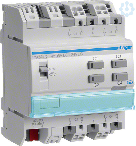 Jalousieaktor 4fach, 6A /24V DC, KNX. Schaltausgang zum Schalten von 4 Jalousieausgängen. Über die Jalousiefunktion kann der Fahrbefehl AUF/AB/Stopp und der Lamellenwinkel verstellt werden. Prozentansteuerung der Jalousie zum Fahren einer vordefinierten Position. Mit Alarmfunktion zur Steuerung der Jalousie in eine definierte Position. Sicherheitsabfahrt solange die Taste gedrückt bleibt. 64 Szenenfunktion pro Kanal. Logikblock zur Steuerung des Ausgangs in Abhängigkeit zum Ergebnis einer logischen Verknüpfung. Preset-, Sperrfunktion, Zwangssteuerung. Das Gerät setzt die Businformationen in entsprechende Befehle um. Die Ausgänge werden über die Systemleitung von den ihnen zugeordneten Eingängen geschaltet. Alle Ausgänge haben am Gerät eine Handbedienung, die auch sperrbar ist, sowie eine Schaltzustandsanzeige mittels LED und Betriebsstundenzähler pro Ausgang. Das Gerät kann mit einem Diagnostikwerkzeug ausgelesen werden. Beschriftungsmöglichkeit direkt am Gerät.