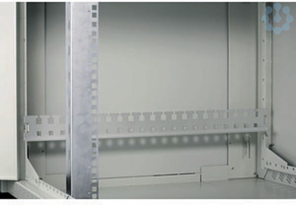 Kabelträger für Gehäuse aus verzinktem Stahl, der die Befestigung und Führung der Kabel an der Rückseite des Gehäuses ermöglicht. Wird an der Rückseite des Gehäuses befestigt, um die Kabel zu stützen und zu befestigen. Produktfamilie Actassi. VPE 1.