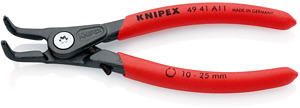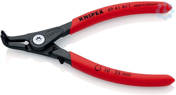 49 41 A11 Präzisions-Sicherungsringzange hoch belastbar im Dauereinsatz: bis zu 10-fach höhere Standzeit gegenüber angedrehten Spitzen. Mit eingesetzten Spitzen für sicheres Arbeiten. Hoch belastbar im Dauereinsatz, bis zu 10-fach höhere Standzeit. Präzises, leichtgängiges Schraubgelenk. Geschmiedet. Große Auflageflächen an den Spitzen: keine Verwindung der Ringe, leichte Montage. Schlanker Zangenkopf für optimalen Zugang zum Werkstück. Im Gelenk liegende Öffnungsfeder, geschützt und unverlierbar. Griffe mit rutschhemmendem Kunststoff überzogen. DIN 5254 B; 90° gewinkelte Spitzen. mit Spreizbegrenzung zwecks normgerechter Montage gemäß DIN 471. die einstellbare Anschlagschraube verhindert ein Überdehnen der Ringe. - Kapazität für Wellendurchmesser: Ø 10 – 25mm - Spitzen (Durchmesser): 1,3mm