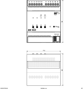Der KNX-Dimm-Aktor kann sowohl für Unicolor, als auch für RGB-Leuchten verwendet werden. Die entsprechende Einstellung der Steuerung erfolgt über Software. Geeignet für LED-Leuchten mit 12, 24, 36 und 48V/DC Betriebsspannung. Die tatsächliche Eingangsspannung ist abhängig von der benötigten Spannung der zu versorgenden Leuchten. Anschlüsse: 1x Eingang für KNX-Bus, 1x Ein- und 2x Ausgang für 12-48V/DC zur Durchgangsverdrahtung und 4x Ausgang. Die Schraubklemmen sind für Kabel von 0,5mm² - 2,5mm² geeignet. Technische Daten: ta: -20°C - 50°C, tc: 75°C, max. Ausgangsleistung je Kanal: 5A bei 12-36V/DC, 2A bei 48V/DC (60W bei 12V/DC, 120W bei 24V/DC, 180W bei 36V/DC und 96W bei 48V/DC).