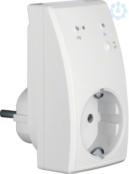 KNX-Funk Schaltaktor für Stecker SCHUKO KNX Funk polarweiß, matt. KNX-Funk Schaltaktor für Stecker für fernbedientes Schalten elektrischer Verbraucher. Niedriger Eigenenergiebedarf, Resetfunktion (auf Werkseinstellung), werkzeuglose quicklink-Konfiguration über Tasten und LED-Anzeige mrdquo,glich, quicklink Funktionen: Schalten, 2 Szenen, Zeitschaltung, Taster Schließer, Integration via Medienkoppler ins KNX-TP-System, ETS Zusatz-Funktionen: +6 Szenen, Betriebsart Ein/Aus, Zwangssteuerung, Zustandsanzeige, mit Konfigurations- und Funktions-LED, mit Kontroll-LED für Ein/Aus, mit Konfigurations- und Funktions-Taste, mit Handbetätigung Ein/Aus, Aufrufen der Szenen über KNX-Funk Geräte, Speicherung von Szenen sperrbar.- Betriebsspannung 230 V~ - Frequenz 50 Hz - Schaltstrom 16 A - 230 V Glüh- und Halogenlampen - 2300 W - Leuchtstofflampen 28 x 36 W / max. 120 ˜F - konventionelle Trafos 1600 VA - elektronische Trafos und Bi-Mode - Trafos 1200 W - Funk Empfangsfrequenz 868,3 MHz - Funkprotokoll KNX-Funk - Transmitter duty cycle 1 % - Empfänger-Kategorie 2 - Anzahl Funk Kanäle 1 - Anzahl quicklink Verknüpfungen max. 20 Sender/Empfänger - Betriebstemperatur +0 ... +45°C - Abmessungen (B x H x T) 98 x 54 x 77 mm - Aufbauhöhe 41 mm.