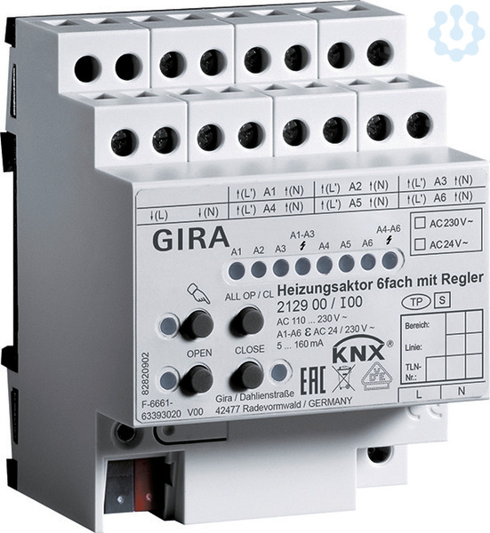 KNX Heizungsaktor 6-fach mit Regler 24/230 V 50/60 Hz