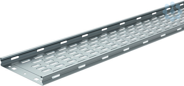 P31 Kabelrinne gelocht, Länge 3000 mm, Breite 300 mm, Höhe 25 mm, mit integriertem Verbinder, Tauchfeuerverzinkt