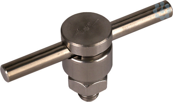 KlemmSchrauben-Verbinder nach DIN EN 62561-1, zum blitzstromtragfähigem Anschluss von Rundleitern z. B. an Flachprofile, Regenrohrschellen oder andere Teile der Blitzschutzanlage. Ausführung einteilig NIRO mit Schraube und Mutter M10.