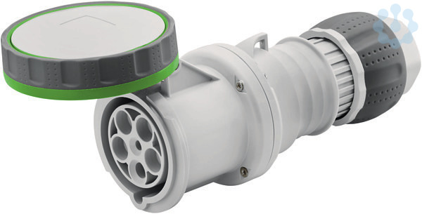Kupplung fuer industrielle Anwendungen gemaess IEC 60 309 (EN 60 309) Baureihe IEC 309 HP mit Verschlussssystem aus Edelstahlschrauben und Gewindeeinsaetzen aus Messing, vernickelte Kontakte, Kunststoffteile halogenfrei gemaess EN 50 267-2-2 und gummierter Oberflaeche, Leitungseinfuehrung als Kabelverschraubung mit integrierter Zugentlastung, Anschlusstechnik: Schraubklemme, Anschlussquerschnitt 6 - 16 mm² feindraehtig / 6 - 25 mm² ein- oder mehrdraehtig, Temperaturbereich -25 - +40 °C, UV Bestaendig, Stossfestigkeit IK09