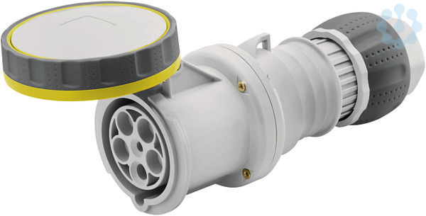 Kupplung fuer industrielle Anwendungen gemaess IEC 60 309 (EN 60 309) Baureihe IEC 309 HP mit Verschlussssystem aus Edelstahlschrauben und Gewindeeinsaetzen aus Messing, vernickelte Kontakte, Kunststoffteile halogenfrei gemaess EN 50 267-2-2 und gummierter Oberflaeche, Leitungseinfuehrung als Kabelverschraubung mit integrierter Zugentlastung, Anschlusstechnik: Schraubklemme, Anschlussquerschnitt 6 - 16 mm² feindraehtig / 6 - 25 mm² ein- oder mehrdraehtig, Temperaturbereich -25 - +40 °C, UV Bestaendig, Stossfestigkeit IK09