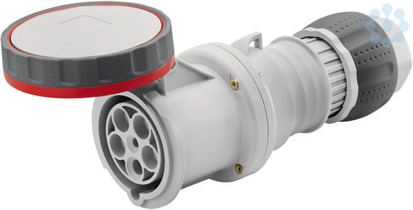 Kupplung fuer industrielle Anwendungen gemaess IEC 60 309 (EN 60 309) Baureihe IEC 309 HP mit Verschlussssystem aus Edelstahlschrauben und Gewindeeinsaetzen aus Messing, vernickelte Kontakte, Kunststoffteile halogenfrei gemaess EN 50 267-2-2 und gummierter Oberflaeche, Leitungseinfuehrung als Kabelverschraubung mit integrierter Zugentlastung, Anschlusstechnik: Schraubklemme, Anschlussquerschnitt 6 - 16 mm² feindraehtig / 6 - 25 mm² ein- oder mehrdraehtig, Temperaturbereich -25 - +40 °C, UV Bestaendig, Stossfestigkeit IK09