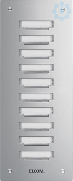 KVM-10/1 Klingelplatte 10/1 UP Edelstahl ESTA. Unterputz Klingeltableau bestehend aus einer 2 mm dicken Frontplatte aus Edelstahl matt gebürstet mit Tasterleiste, Spezialschrauben, flächenbündiges Namensschild (von vorn wechselbar) mit LED-Beleuchtung und UP-Gehäuse 55 mm Tiefe.