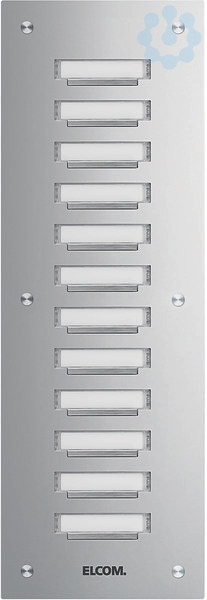 KVM-12/1 Klingelplatte 12/1 UP Edelstahl ESTA. Unterputz Klingeltableau bestehend aus einer 2 mm dicken Frontplatte aus Edelstahl matt gebürstet mit Tasterleiste, Spezialschrauben, flächenbündiges Namensschild (von vorn wechselbar) mit LED-Beleuchtung und UP-Gehäuse 55 mm Tiefe.