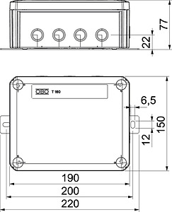 Kabelabzweigkasten 190x150x77 Polypropylen E30-90 Außenbefestig.
