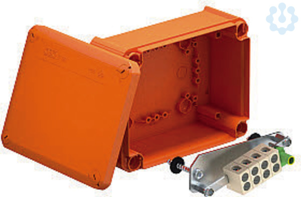 Der halogenfreie Kabelabzweigkasten FireBox ist gemäß DIN 4102-12 als kabelspezifische Verlegevariante für den elektrischen Funktionserhalt zugelassen und erfüllt die Anforderungen der Funktionserhaltklassen E30 bis E90. Die vormontierte Anschlusseinheit aus hochtemperaturbeständiger Spezialkeramik mit gekennzeichneter Schutzleiterklemme gewährleistet das schnelle und einfache Anschließen. V-TEC Kabelverschraubungen (separat zu bestellen) ermöglichen die frei positionierbare Kabeleinführung. Weitere Vorteile sind die hohe Schutzart IP65 und die Unempfindlichkeit gegen Schläge gem. Schlagfestigkeitsklasse IK07. Der Nennquerschnitt der Leistungskabel beträgt max. 16 mm². Bei Mehrfachbelegung können pro Klemmstelle maximal 2 starre Kupferleiter mit 6 mm² Querschnitt angeschlossen werden. Die Anzahl der Klemmstellen inkl. Schutzleiterklemme beträgt 5. Entnehmen Sie Angaben zu Kabeltypen und -herstellern den Verwendbarkeitsnachweisen. Inklusive Brandschutz-Schraubanker zur dübellosen Befestigung des Kabelabzweigkastens.