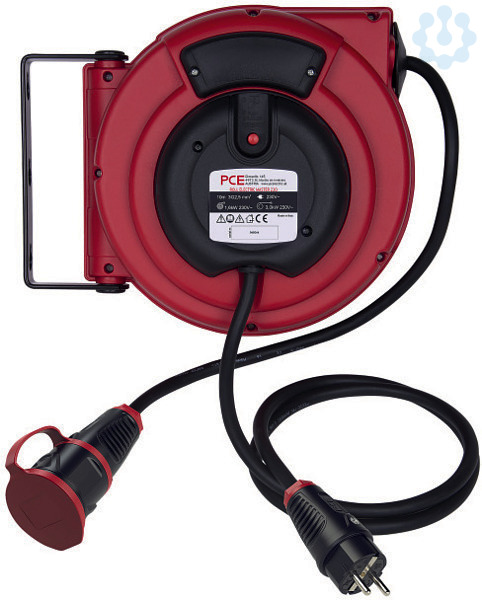 Kabelaufroller 10m H07RN-F 3G2,5, IP20; BxHxT = 185x275x325mm; mit Schutzkontaktstecker und -kupplung; mit Überlastschutz und abschaltbarer Blockiervorrichtung; Zuleitung: ca. 1,3m; Gehäuse: rot