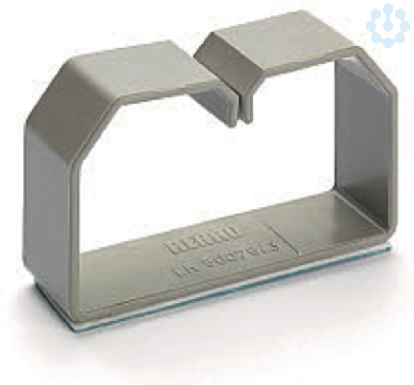Kabelhalteklammer für LKV-Verdrahtungskanäle. Die Kabelhalteklammer umfasst alle im Kanal installierten Leitungen und verhindert das Herausfallen beim Abnehmen der Oberteile. Mit Klebeband an der Unterseite zur Montage.